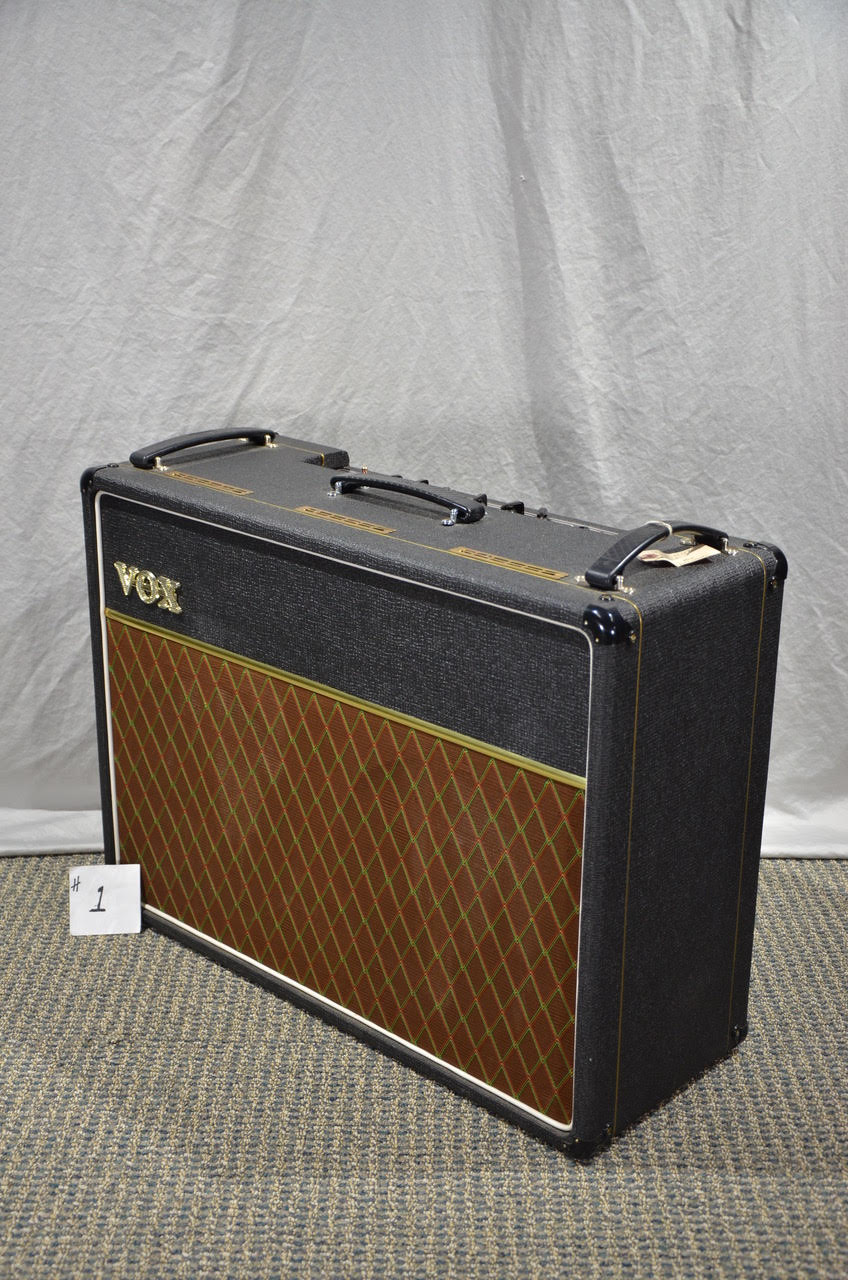 Condition – Excellent / Combo amp in Excellent working condition / Complete Service / New Electrolytic power supply caps / New Tubes 1 x 12AX7 2 x EL34 / New Reverb Pan / all controls Deoxited / Vox style Filter Choke installed / Presence Controls added to Power Section. The Preamp is Solid State that feeds into the Tube Output Section. 2 Channel Switching for Normal / Boost selected by foot switch. Reverb works on both channels. Effects Send / Return / Line out Jacks.This Amp has a Strong loud Clean sound on the Normal Channel and the Boost Channel can go form raw to clean. The upper Rear Panel is missing. The Speaker works excellent and gets loud when pushed. Great Small combo by Marshall.